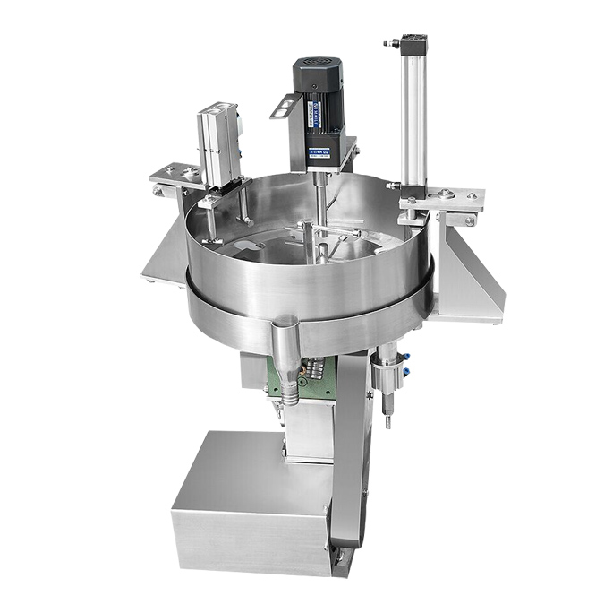 這套設(shè)備是由給袋式真空包裝機(jī)+單頭提升機(jī)+收縮杯下料器組合而成。